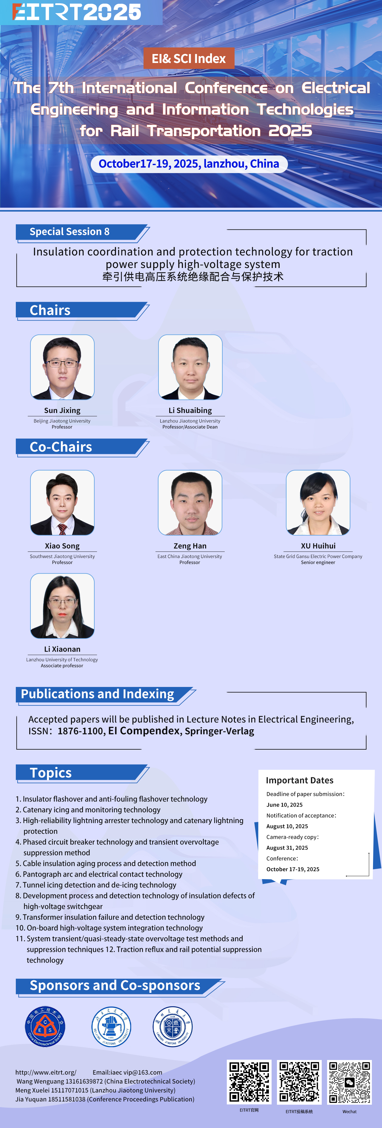 【EI检索】EITRT2025 “牵引供电高压系统绝缘配合与保护技术”分论坛征稿