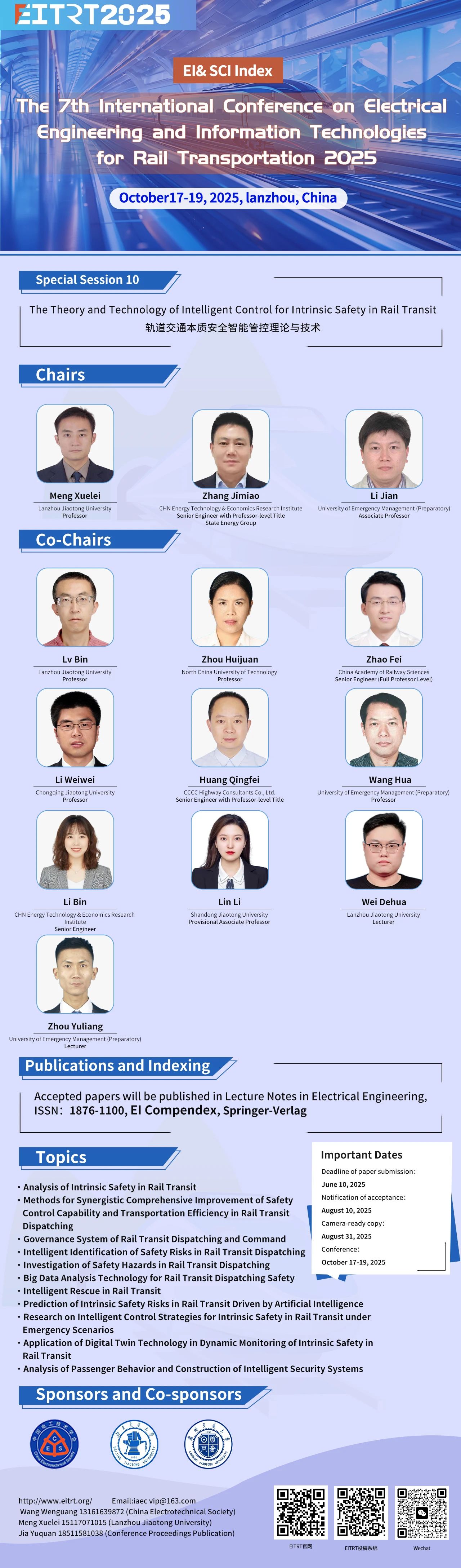 【EI检索】EITRT2025 “轨道交通本质安全智能管控理论与技术”分论坛征稿