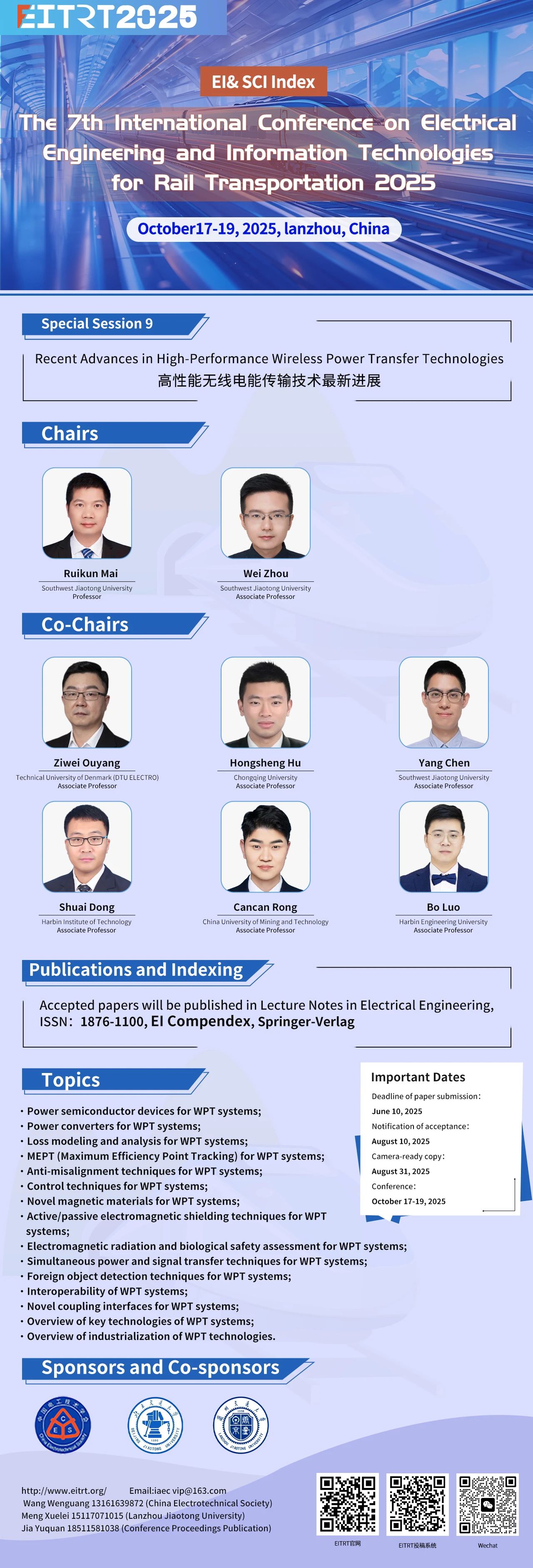 【EI检索】EITRT2025 “高性能无线电能传输技术最新进展”分论坛征稿